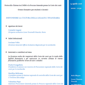 Martedì 14 aprile 2025, presso l’Istituto Superiore Taramelli-Foscolo di Pavia, si è svolto l’evento formativo “Diffondere la cultura della legalità finanziaria”, promosso dall’Ufficio Scolastico Regionale per la Lombardia e dalla Procura regionale della Corte dei conti, nell’ambito del Protocollo d’Intesa con il Ministero dell’Istruzione e del Merito.
