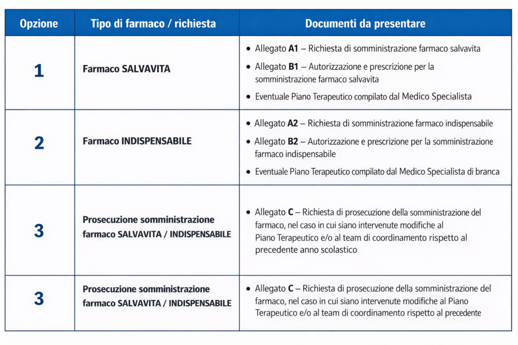 Il nuovo protocollo per la somministrazione dei farmaci in ambito scolastico comprensivo degli allegati per le necessarie richieste.